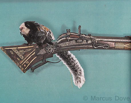 Pels fishing owl on German match-lock rifle INTROVERTED
